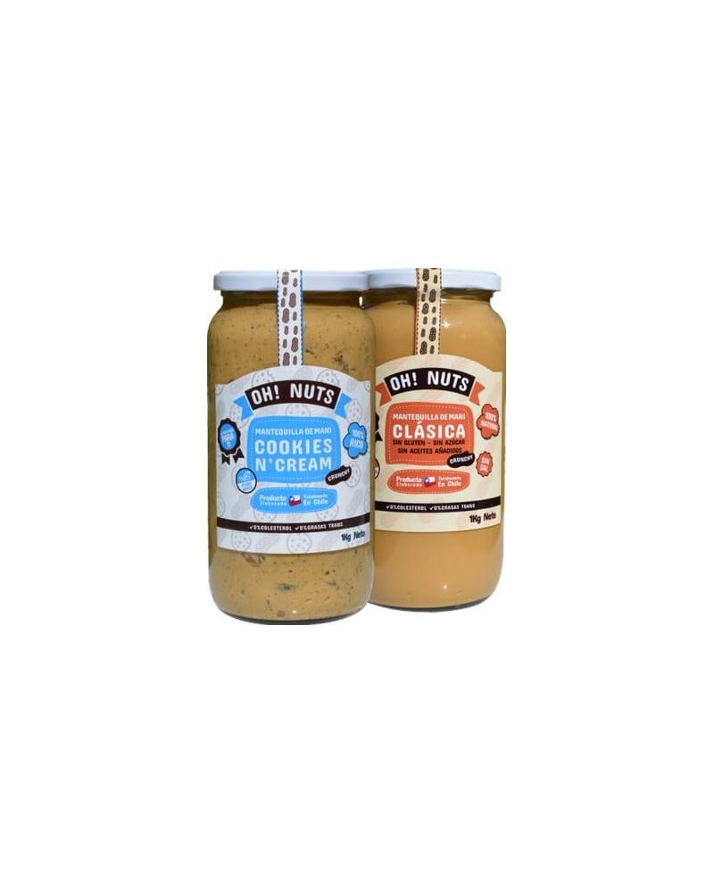 El Pack 2 Mantequillas de Maní Oh Nuts! de 1kg es ideal para quienes consumen grandes cantidades de este alimento saludable y delicioso. Combina libremente tus sabores favoritos, todos elaborados con ingredientes de alta calidad y aptos para veganos.